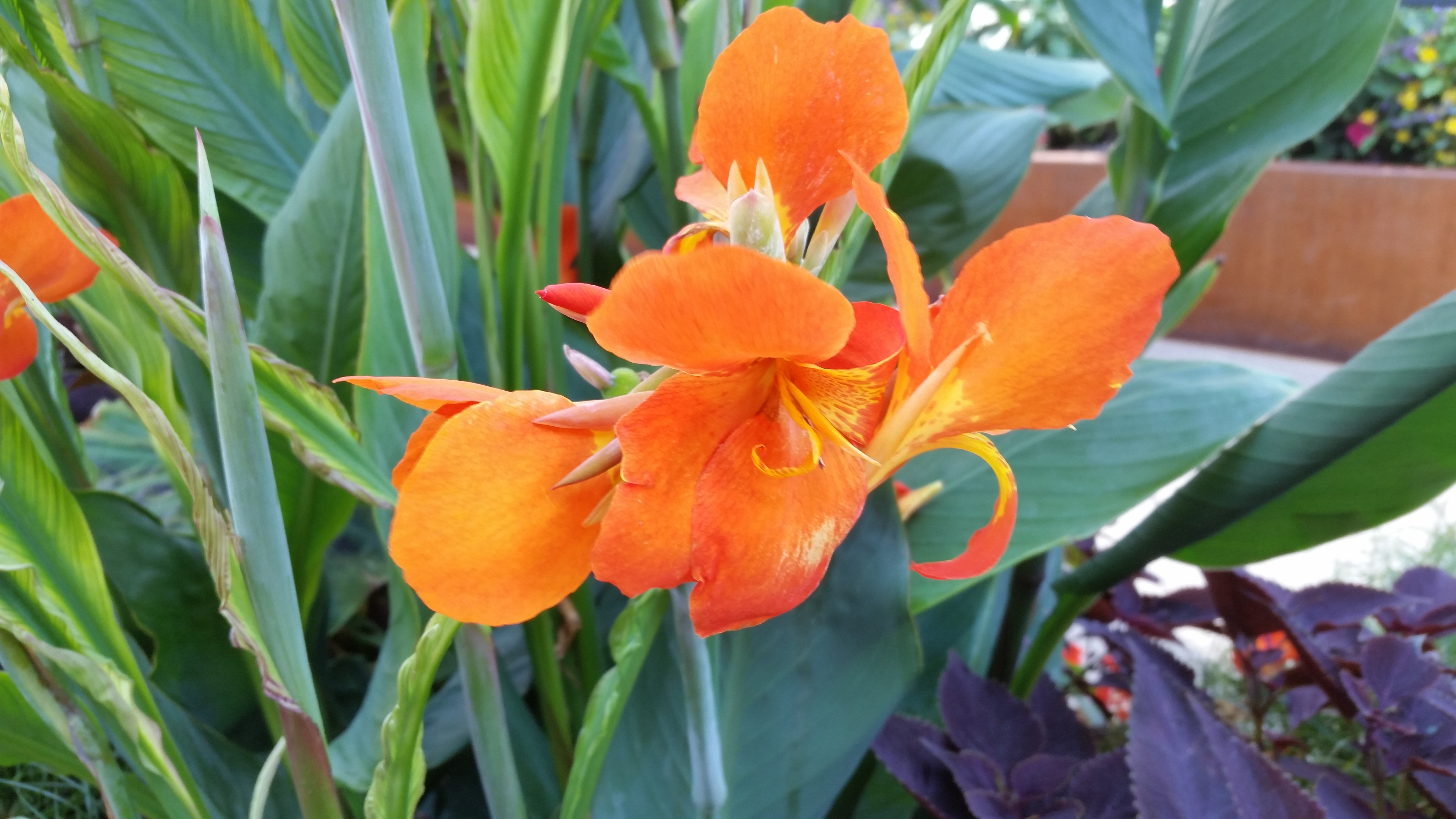 We’re having lots of fun with tropical plants in the landscape. They’re unexpected. They’re exotic. Most thrive in both sun and shade and ask little. And by this time of year, they’re exuberantly overblown. Some images to inspire…
